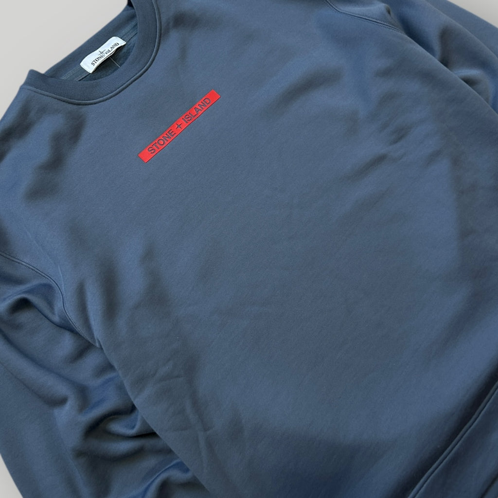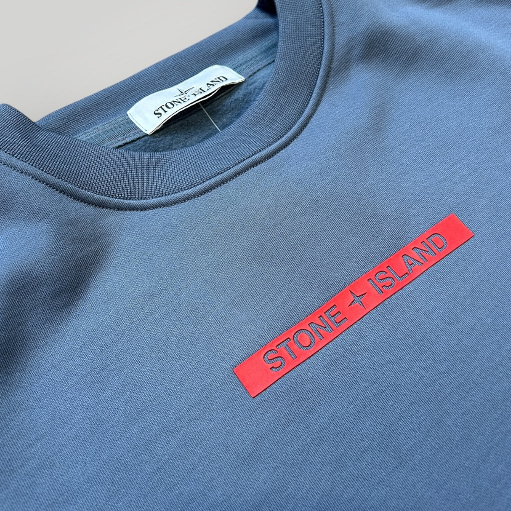 Stone Island Avio Blue Micrographic Print Organic Cotton Crewneck Jumper L