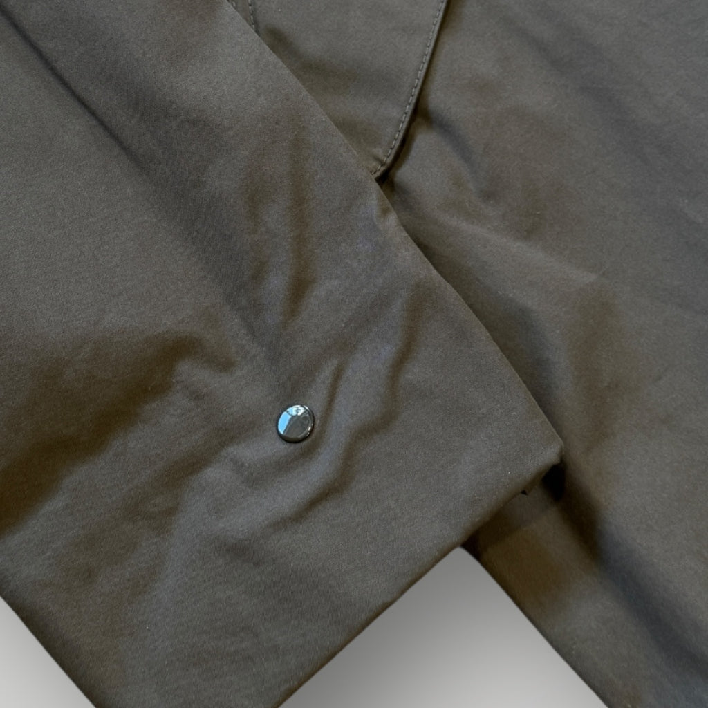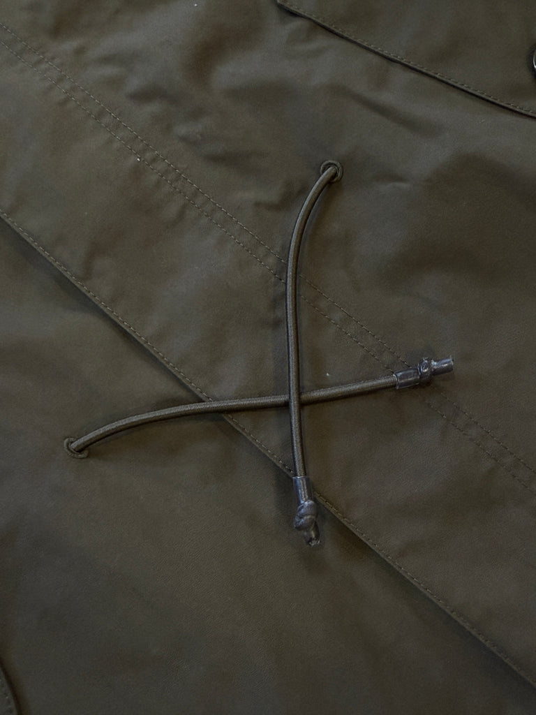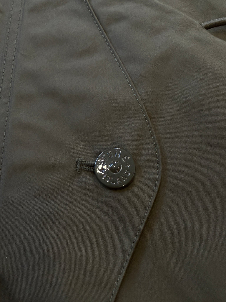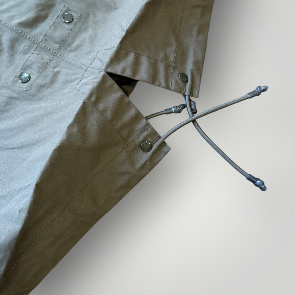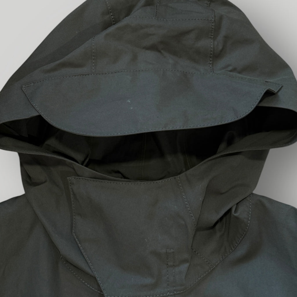 Ghost pieces are based on the concept of camouflage and are totally monochromatic. Even their Stone Island badge have been created in a special mono-colour version to blend with the garment. Fishtail parka in 0-Ventile, a 100% organic version of Ventile. Developed in the U.K. from the finest, long staple cotton fibre; it is not coated nor laminated. The combination of dense weaving and swelling properties of the fibre when wet, provide an excellent all-weather barrier. Ventile is an entirely natural product offering a unique level of comfort and touch. It is windproof, breathable and very durable. The organic version retains all the original qualities of the fabric. Thermo-taped seams for additional protection.